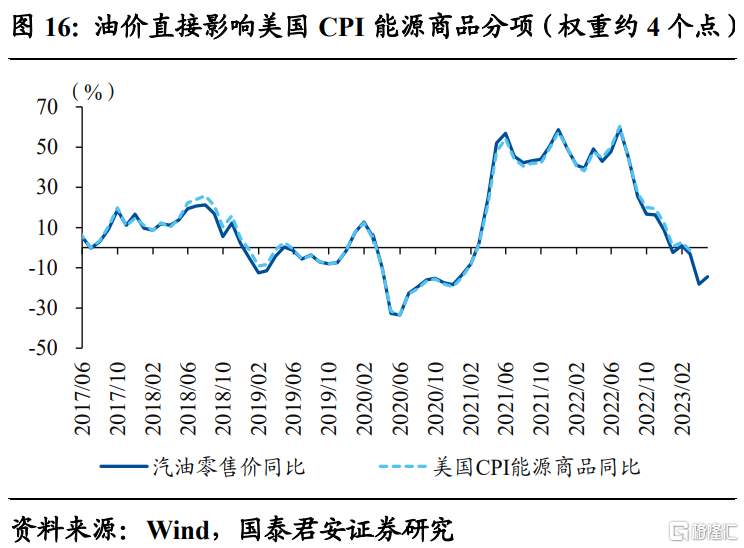 相对高位的油价,有可能在2023年底对美国CPI、中国PPI等形成拉动。汽油等成品油价格与原油价格息息相关,并直接影响到CPI能源商品分项(权重约4个点)。如果油价年底仍在80美元/桶附近运行,可能到年底对美国CPI的拉动或在0.3个点左右。同样,中国PPI也会受到相关影响。