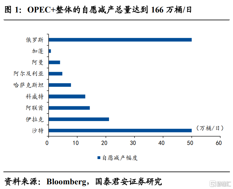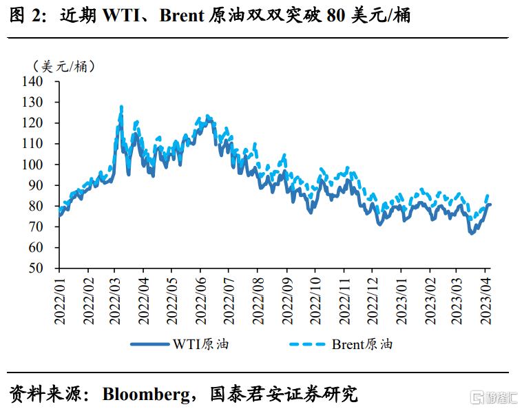 事件:4月2日,OPEC宣布,沙特阿拉伯(50万桶/日),伊拉克(21.1万桶/日),阿拉伯联合酋长国(14.4万桶/日),科威特(12.8万桶/日),哈萨克斯坦(7.8万桶/日),阿尔及利亚(4.8万桶/日),阿曼(4万桶/日),以及加蓬(8000桶/日),自愿减产从5月开始到2023年底。再考虑到俄罗斯在2023年底前自愿减产50万桶/日,OPEC+(包括俄罗斯)整体的自愿减产总量达到166万桶/日。