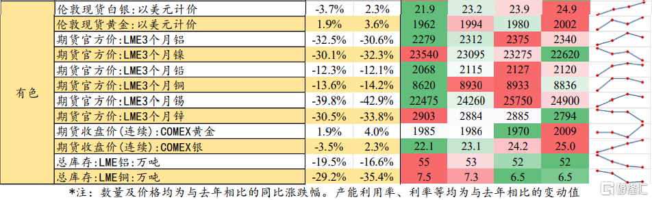 石油化工产品价格多数下跌,黑色产品价格中焦煤期货上涨,有色产品价格多数下跌,能源价格出现上涨趋势,煤炭库存出现持续上涨,金属库存呈下跌趋势。4月7日当周,石化行业商品期货价格除原油、沥青、燃料油和化纤外均呈现下跌或持平趋势。黑色产品方面,秦皇岛煤炭库存增加,焦煤期货价格上涨;综合钢价指数持续下跌,主要钢材品种的库存均下跌。有色产业链金属价格大多呈下跌或持平趋势。