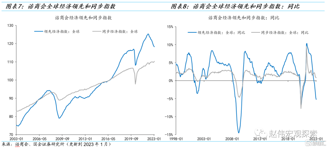 从谘商会(Conference Board)全球经济领先和同步指标来看,领先指标所揭示的经济下行压力仍未在同步指标中体现出来。参考历史经验,当领先指数同比跌至-5%以下(并持续运行在-5%以下)时,经济将难以逃逸衰退。综合而言,虽然2022年下半年至今全球经济修复的韧性持续超预期,但这并不意味着未来还将延续。截止到1月,领先指标仍在下行。截止到1季度末,同步指标也开始边际转弱。所以,考虑到SVB事件后信用收缩的速度或将加速,不应低估今年2季度后经济基本面的压力。
