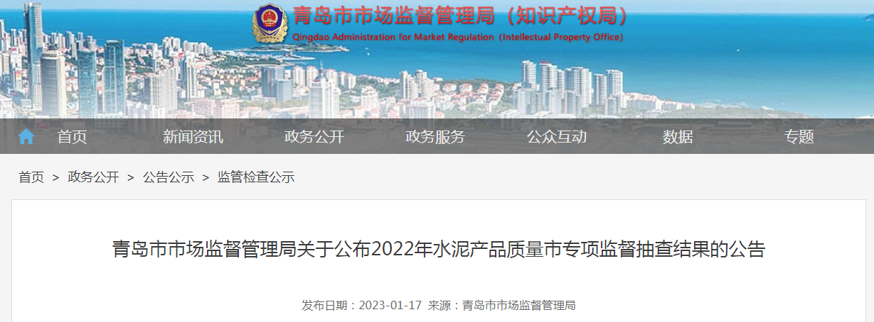 2022年青岛市水泥产品质量市监督抽查结果