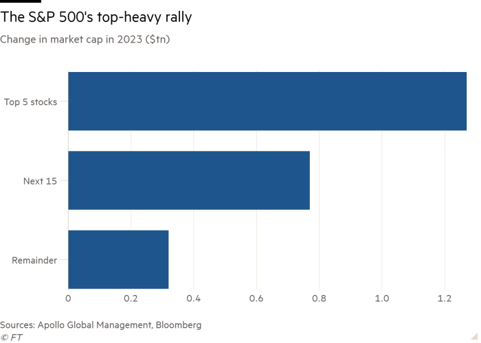 然而,根据私募股权公司阿波罗全球管理的数据,该指数其他成分股的市值同期仅增长了3200亿美元。2023年迄今,标普500指数整体累计上涨近7%。