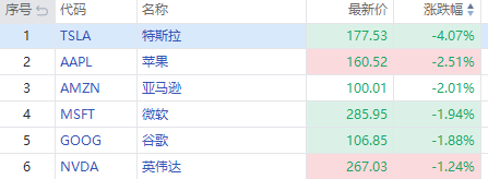 美股大型科技股下挫,截至发稿,特斯拉跌超4%,年内五次在美降价引发市场对其汽车业务毛利率的担忧。苹果、亚马逊跌超2%,微软、谷歌跌近2%,英伟达跌超1%。