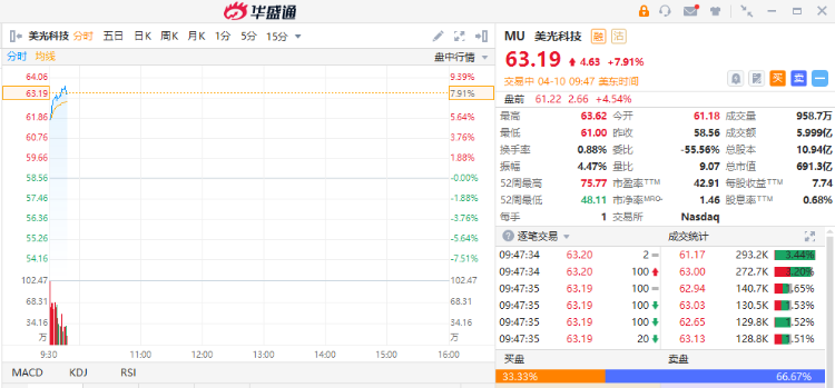华盛资讯4月10日消息,三大指数集体走弱,道琼斯指数跌0.18%,纳斯达克指数跌1.23%,标普500指数跌0.65%。