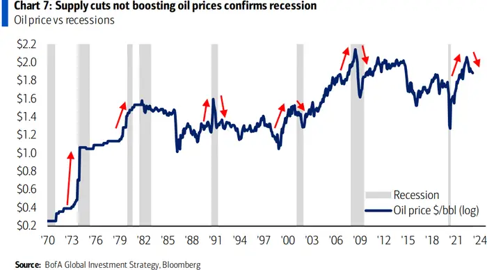 美银还表示,从历史上看,油价在进入衰退时上涨,在衰退期间下跌。最新的欧佩克+减产凸显了他们对经济衰退的担忧,迄今为止中国需求对原油的价格上行压力有限。