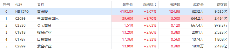 华盛资讯4月11日讯,港股黄金股午后持续走强,板块整体再创近两年新高。截至发稿,中国黄金国际涨超8%,灵宝黄金涨超8%,山东黄金涨超3%,招金矿业、紫金矿业涨超2%。