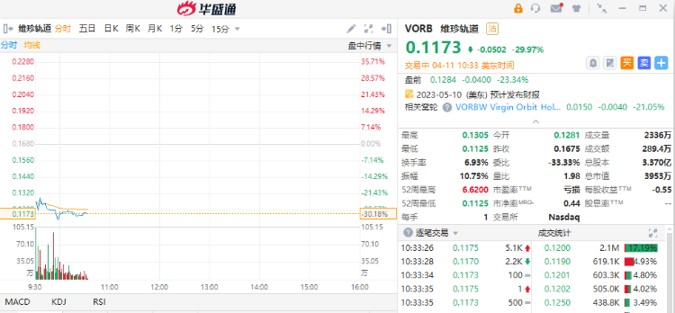 维珍轨道下挫近30%,盘初股价一度创历史新低,该股将于4月13日开市时暂停交易。