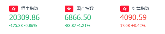 截至周三收盘,恒生指数跌175.38点或0.86%,报20309.86点。国企指数跌1.21%,报6866.5点,红筹指数涨0.42%,报4090.59点。截至4月13日,恒生指数夜期(4月)收报20069点,跌297点或1.458%,低水241点。