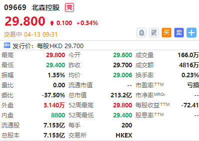 华盛资讯4月13日讯,SaaS概念北森控股今日挂牌上市,股价现涨0.34%,当前成交额4816万港元,最新总市值超213亿港元,该股昨日暗盘平收。