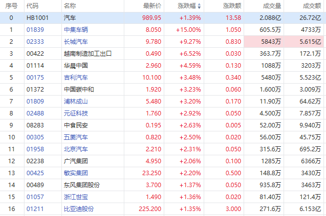 华盛资讯4月14日消息,汽车股今日股价回暖,截至发稿,中集车辆大涨15%,长城汽车涨超9%;华晨中国涨超4%;吉利汽车涨超2%;比亚迪股份涨超1%。