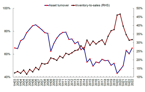 图表23:相较2021年,资产周转率基本持平,库销比下降