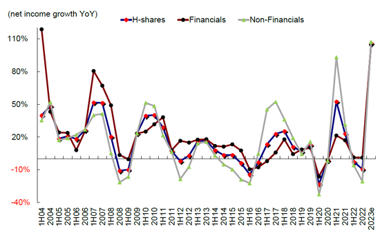 图表37:我们预计2023年海外中资股整体盈利增长10.4%