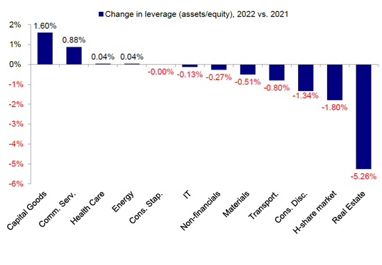 图表24:资本品和通信服务板块杠杆率上行,而房地产和可选消费等板块杠杆率下行