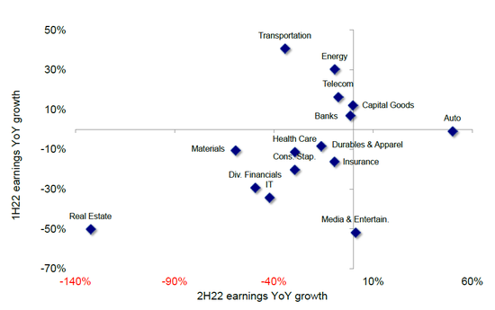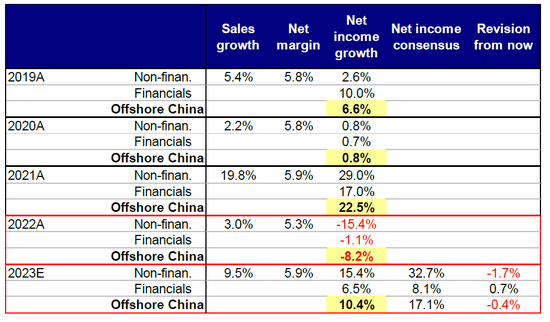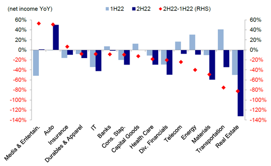 图表2:宏观经济疲弱环境下,2022年下半年盈利下滑,预期2023年盈利改善