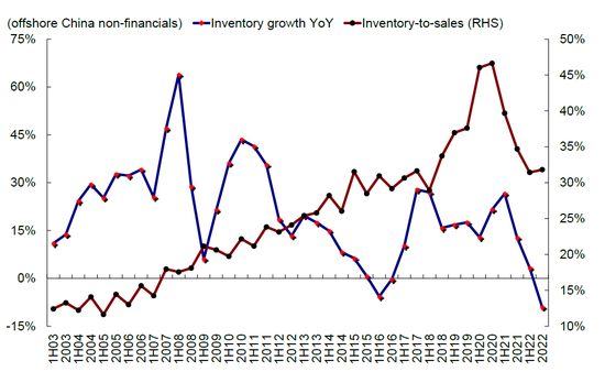 图表31:在持续去库存背景下,2022年库存增速放缓
