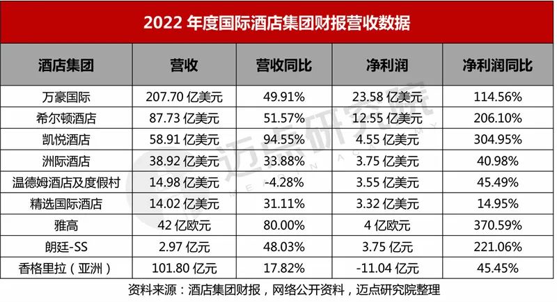 2022年国际酒店集团财务营收表现:走出低谷,强劲复苏,几近全面盈利