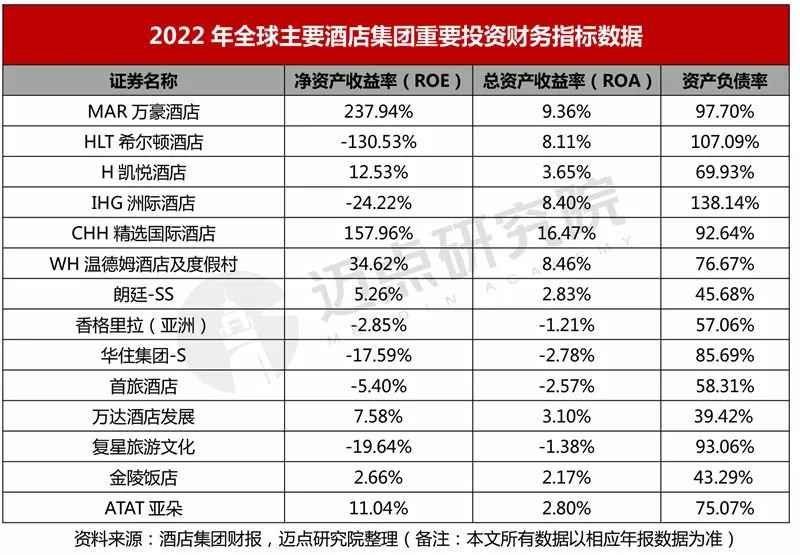 2022年酒店集团投资回报指标情况:国际集团盈利能力突出,国内集团经营相对稳健谨慎