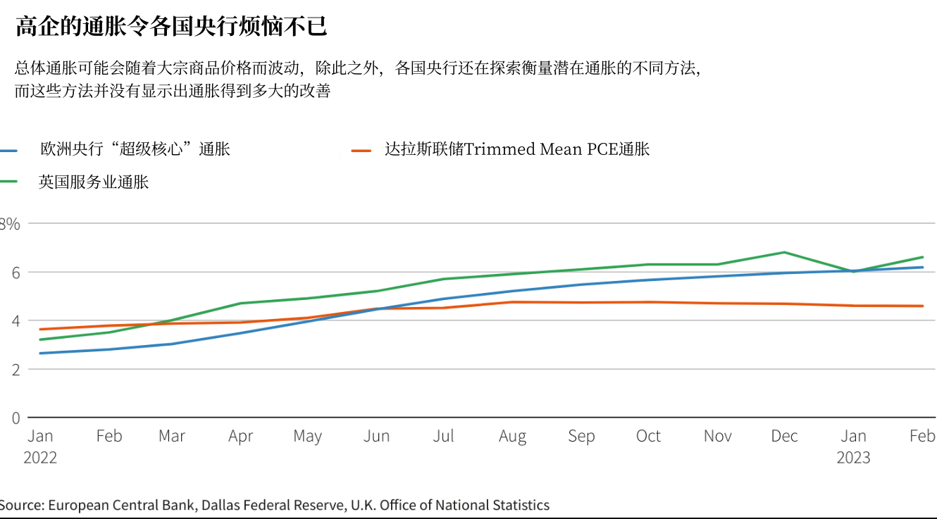 在欧洲和美国,通胀已经出现了一些明显的下降,但这是由最不稳定的组成部分,尤其是能源成本推动的,而潜在的通胀率,尤其是在劳动密集型行业,变化一直较慢。