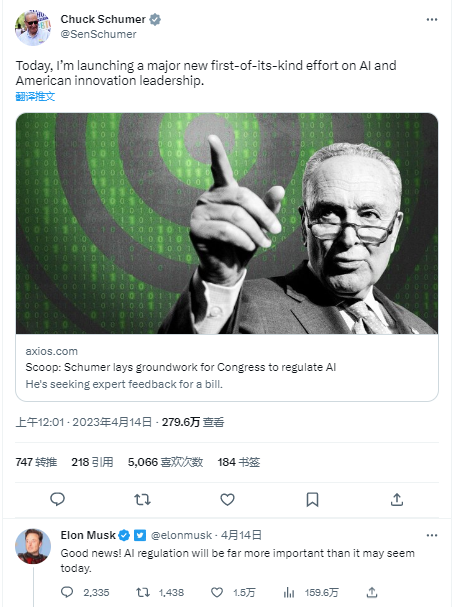 马斯克上周在推特上还回应了有关参议院多数党领袖查克·舒默为国会监管AI奠定基础的消息,他表示:“好消息,AI监管将比今天看起来重要得多。”