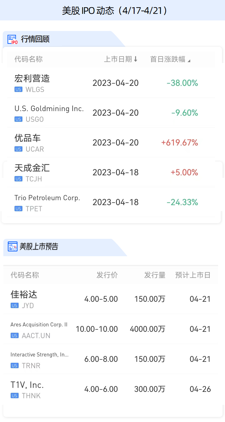 美东时间4月20日周四,致力于提供商用新能源车换电解决方案的优品车 $UCAR 登陆纳斯达克,开盘报8.1美元,涨幅35%,因股价波动极大,优品车盘中至少暂停交易22次,但并未影响股价迅猛涨势。午盘优品车股价进一步走高,一度涨至75美元,日内涨幅达1150%,最终收报43.18美元,收涨约619.7%。