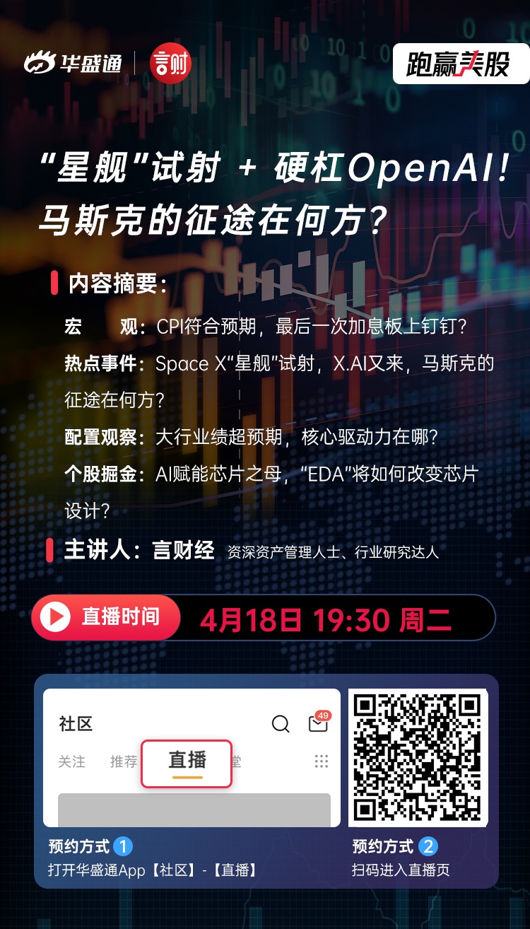 不管是星舰试射还是加入AI大战,两条都是风风火火的路,马斯克的征途终会落向何方?点击预约直播>>>“星舰”试射 + 硬杠OpenAI!马斯克的征途在何方?今晚19:30和言财老师一起在线探讨。