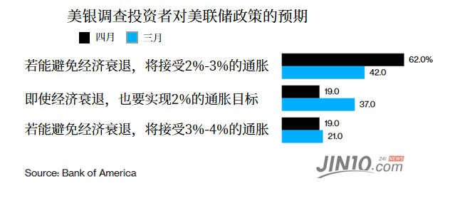 美国银行在4月7日至13日期间对69位全球固定收益基金经理的调查显示,81%的受访者认为美联储将接受超过2%的通胀率。