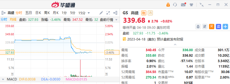 该公司还抛售了约40亿美元数字银行Marcus贷款中的一大部分,从而释放了4.4亿美元的准备金。这对利润的提振超出了分析师的预期,但整体利润仍较上年同期有所下降。高盛Q1净利润为32.3亿美元,同比下降18%;摊薄后每股收益为8.79美元,上年同期为10.76美元,市场预期为8.05美元。