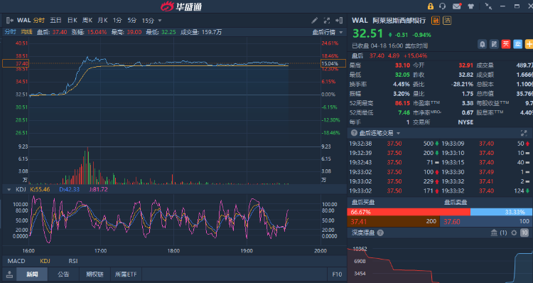 阿莱恩斯西部银行一季度净利息利润6.099亿美元,分析师预期5.928亿美元;一季度净利息利润率3.79%,分析师预期3.70%;一季度信贷亏损0.194亿美元,分析师预期0.296亿美元;一季度EPS为1.28美元,分析师预期2.09美元;二季度季初至今(QTD)存款到4月14日已经增加20亿美元。