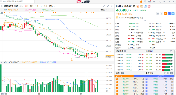 4月19日讯,康希诺生物持续下挫,盘中跌逾9%。截至发稿跌8.39%报40.4港元每股,成交额7319万港元,最新市值100亿港元。