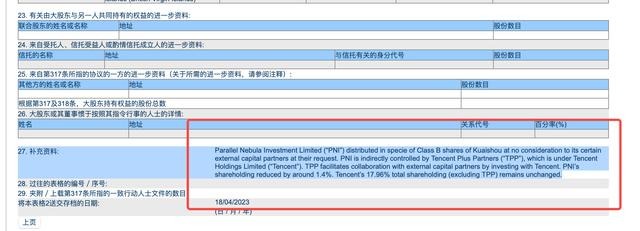 4月19日,港交所披露易显示,Parallel Nebula Investment Limited(简称“PNI”)应其部分外部资本伙伴的要求,分配约5100万股快手B类股。