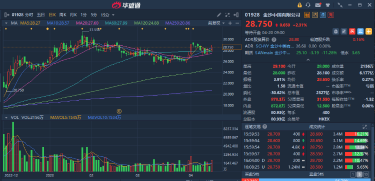 金沙中国有限公司(01928)公布,根据美国公认会计原则,金沙中国2023年第一季的净收益总额为12.7亿美元,同比增长1.32倍;净亏损为 1000万美元,同比收窄约97%;经调整物业EBITDA为3.98亿美元,2022年第一季的经调整物业EBITDA亏损则为1100万美元。