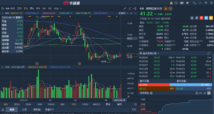 截至发稿,美国铝业周三美股盘后跌1.99%,报40.40美元。
