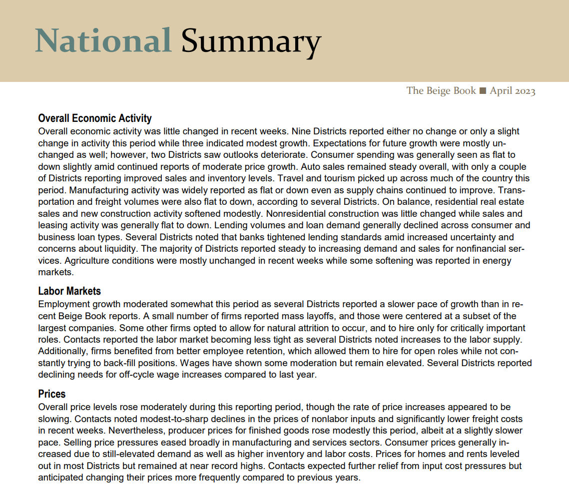 过去几周,在美联储和其他监管机构出台紧急措施后,对银行业状况的担忧有所缓解。自那以来,美联储官员一直在评估潜在贷款条件收紧对更广泛经济的影响,而褐皮书给了一个早期线索。