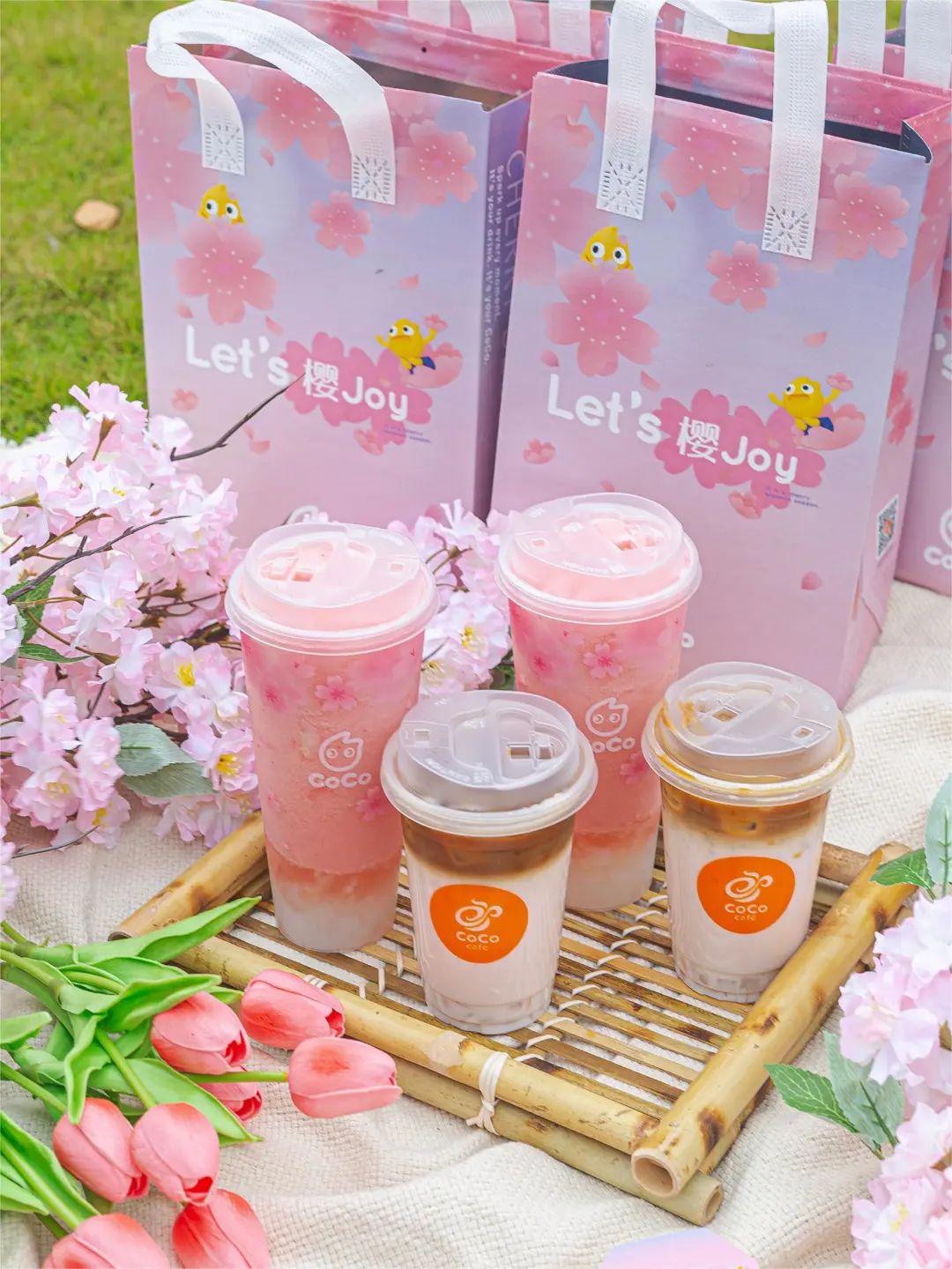 CoCo都可的樱花粉荔、KUMO KUMO×Rico推出的樱花蜜桃芝士蛋糕、格力高×樱桃小丸子联名的樱花扁桃仁味百奇以及樱花草莓味双层百力滋、瑞幸咖啡限时回归的珞珈樱花拿铁、星巴克云樱轻乳酪拿铁......每年,围绕樱花季的主题营销数不胜数。