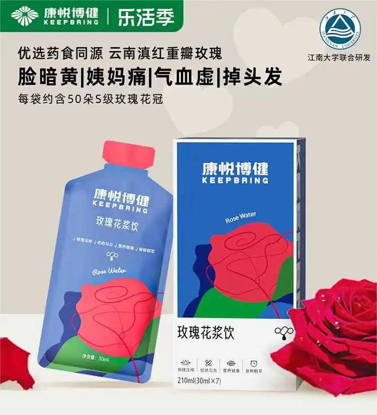考虑到玫瑰还拥有疏肝理气活血的功效,全球植物提取物原料供应商康悦博建特别推出了一款玫瑰花浆饮,可以帮助女性调理气血、美容养颜。