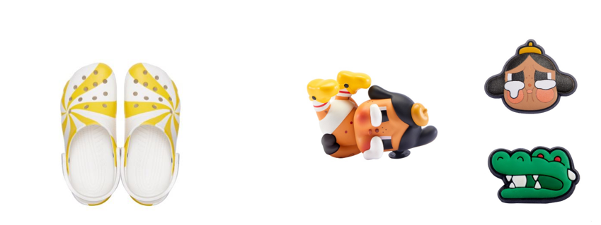据了解,本次联名产品包括一双经典克骆格洞洞鞋,鞋面印制的黄色“大转盘”条纹图案由创造CRYBABY的艺术家Molly亲自设计,完美融入“巡游”系列的狂欢氛围;智必星盲盒也以全3D的形式突破了Crocs常规的平面形态,为粉丝带来惊喜。其中 6 套智必星常规款盲盒由CRYBABY“巡游”系列衍生,一款智必星隐藏款盲盒则是艺术家为Crocs特别设计,此前从未在市面发售,让双方粉丝感受到这次联名的满满诚意。