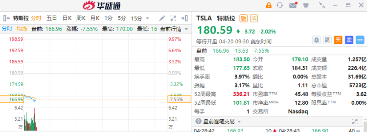 特斯拉盘前大跌超7%,公司Q1净利润同比下降24%至25.13亿美元;1.5倍每日做空特斯拉ETF $TSLL 大涨超8%。新濠博亚娱乐、金山云盘前涨超9%,九洲大药房续涨超5%,新东方教育涨超4%。