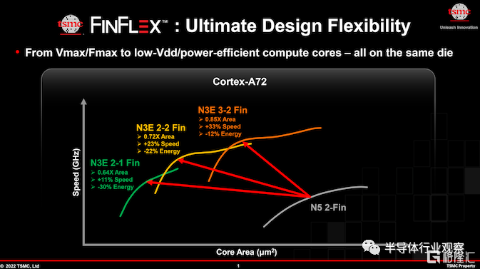 其中N3E 提高了性能,降低了功耗,并增加了工艺窗口,从而提高了亮了。但代价是该节点的逻辑密度略有降低。与 N5 相比,N3E 的功耗将降低 34%(在相同的速度和复杂度下)或 18% 的性能提升(在相同的功率和复杂度下),并将逻辑晶体管密度提高 1.6 倍。