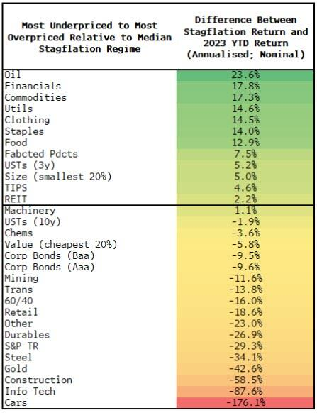 “我们可以根据滞胀期间的中位数回报率和2023年至今的回报率做对比,得出哪些资产被低估,哪些又被高估。”