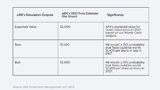 凯茜·伍德的方舟投资管理公司周四发布最新研报,预测特斯拉股价到2027年将达到2000美元。