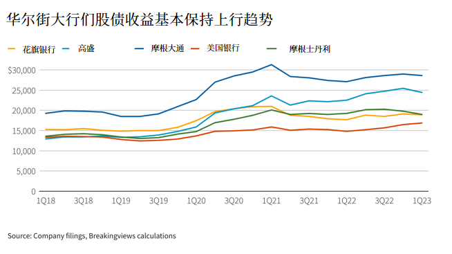 尽管受俄乌冲突对大宗商品市场冲击影响,大银行业绩较去年有所下滑,但数据仍然异常强劲。对于高盛和摩根大通来说,2023年第一次度甚至是十年来第三好的季度。对美国银行而言,在欣欣向荣的抵押贷款交易部门加持下,本季度是自2012年以来利润最丰厚的季度。
