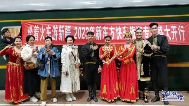 这趟旅游专列于4月9日21时40分从乌鲁木齐站出发,是今年全国开行的首趟新东方快车。车上的186名旅客来自浙江、江苏、四川等多地。