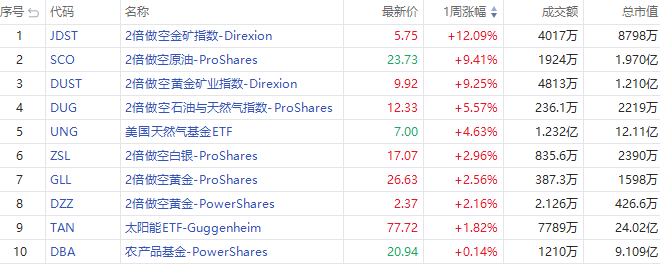 1、本周美股ETF涨幅榜