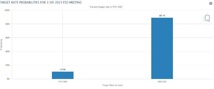 自去年3月以来,美联储已连续加息九次,累计加息幅度高达475个基点。利率期货走势显示市场预计下个月美联储加息25个基点的可能性接近90%,然后暂停加息并在年底前降息。而一些美联储官员和市场参与者认为,5月加息后的2023年剩余时间内将维持利率不变。