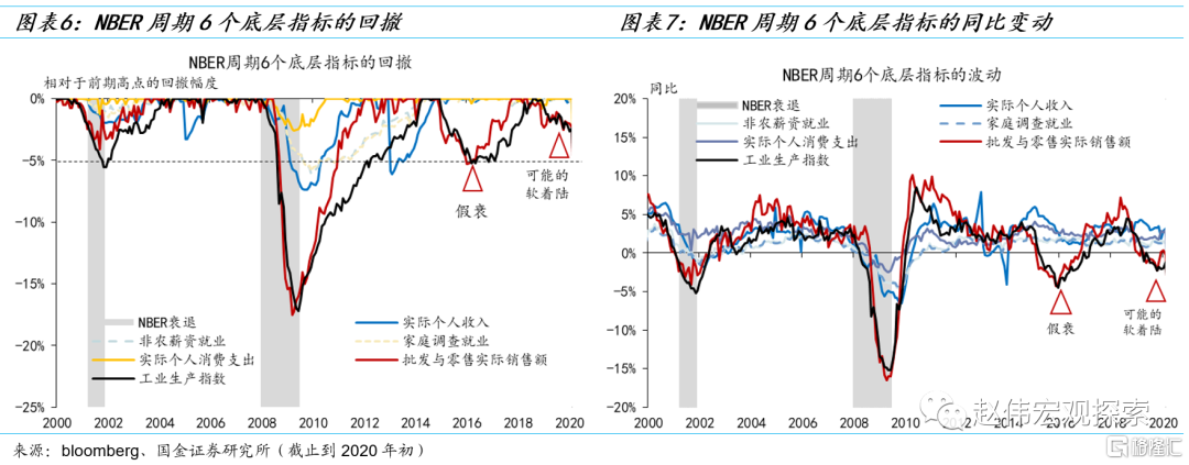 2015-2016年,美国经济经历了一次“假衰”(fake landing),2023年是否会重演?2015-2016年,在NBER周期委员会跟踪的6个指标中,工业生产指数和批发与零售实际销售额均显著回撤(5%),同比跌入负增长区间,但其它4个指标却在持续创新高。这是美国经济在“内循环”强劲,但“外循环”疲弱时的常见特征——欧洲经济仍困扰在欧债危机的“阴霾”之中;中国经济在2015年夏季股票市场崩盘和2015年“811汇改”之后面临较大压力;其它新兴市场经济体在美联储加息和美元升值中面临较大的资本外流压力,国内被迫紧缩货币。美国工业生产和批发与零售受全球贸易的影响较为显著,故出现明显回调。