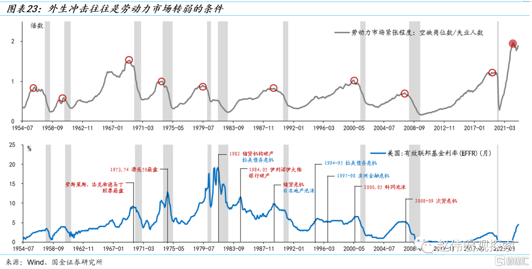 所以,2023年或不同于2015年和2019年,既不是“假衰”的重演,也较难实现“软着陆”。当前,美国经济正处在从放缓到衰退的“十字路口”,劳动力市场的韧性是“最后的堡垒”。在《美国劳动市场“转弱”的条件和信号》一文中,我们已经提示,美国劳动力市场转弱的信号越来越多,金融市场的外生冲击或是“临门一脚”。SVB事件后,衰退叙事的“最后一块拼图”似乎已经补齐。这一次,美国经济或难以逃逸衰退!