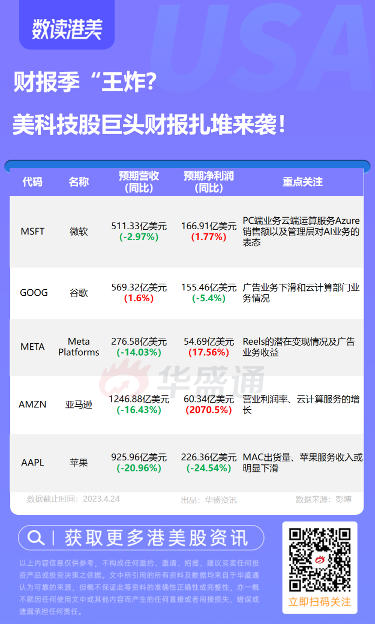 话不多说,一起来看看彭博对这些公司的最新财报预期,此次巨头们的业绩都有哪些看点呢?