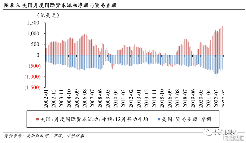 私人外资保持谨慎,官方外资抄底美债,背后依然是对美联储货币政策的博弈。值得注意的是,美强欧日弱的格局没有改变。如果美国经济韧性超预期,甚至走出下一轮经济周期,美国的贸易逆差走扩也会“逼迫”外资投资美元证券资产。