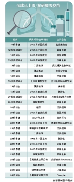 在此背景下,国内众多疫苗企业都在积极布局,加速研发。国家药监局药审中心数据显示,万泰生物、北京科兴中维生物、康希诺、复星医药、艾美疫苗等13家企业的肺炎球菌结合疫苗获得临床试验默示许可,不乏更高效价的在研疫苗,如民海生物、万泰生物均有20价的肺炎结合疫苗在研。