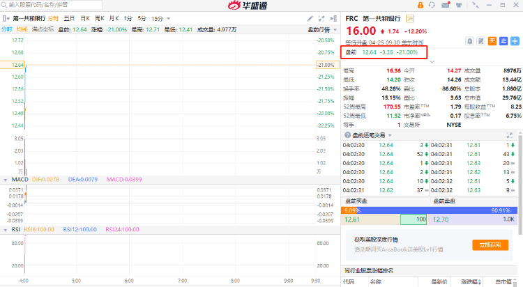 第一共和银行美股盘前跌21%报12.64美元,Q1净利润同比下滑33%至2.69亿美元,总存款下降超40%至1045亿美元。